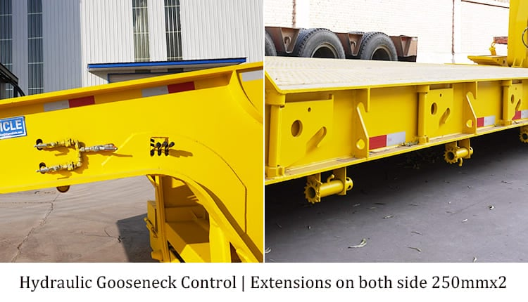 Discover the adaptable RICH lowboy gooseneck trailer on sale. It’s a top – choice for efficiently loading and transporting heavy machinery and equipment. The trailer’s cutting – edge design includes a detachable front on the gooseneck lowboy. This feature allows the detachable lowboy trailer to lower to the ground, forming a convenient self – contained ramp for seamless loading and unloading.